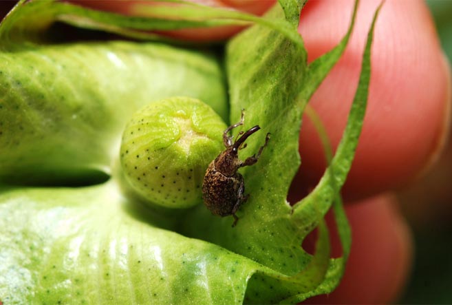 Pequeno, com cerca de 3 a 6 milímetros e coloração marrom, o bicudo-do-algodoeiro (Anthonomus grandis) tem alto poder de destruição e grande capacidade de reprodução, o que dificulta seu controle.