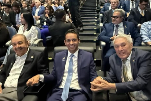 Crédito da foto: Reprodução Allyson Bezerra de mãos dadas com líderes da oligarquia Maia: José Agripino e João Maia