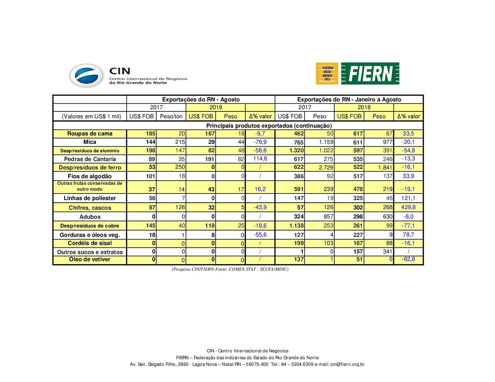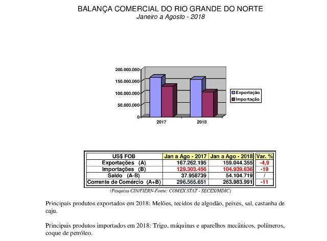 Exportações do RN em agosto