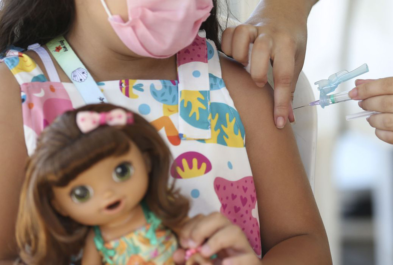 Crianças de 5 a 11 anos podem ser vacinadas contra a covid-19 desde janeiro, o que reduz o risco de uma infecção evoluir para uma síndrome respiratória grave.