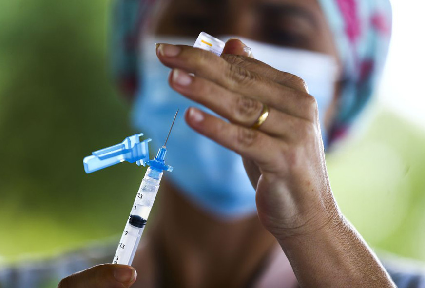 Hoje, estão sendo imunizadas pessoas de 59 anos. As de 58 anos serão vacinados amanhã (30); de 57, na quarta-feira (31); de 56, na quinta-feira (1º de abril) e as de 55, no sábado (3 de abril).
