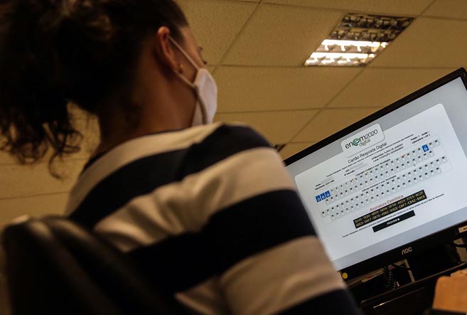 Cada prova terá 45 questões de múltipla escolha, que, no caso do Enem Digital, serão apresentadas na tela do computador. Já a redação será realizada em formato impresso, nos mesmos moldes de aplicação e correção da versão em papel. Os participantes receberão folhas de rascunho nos dois dias.