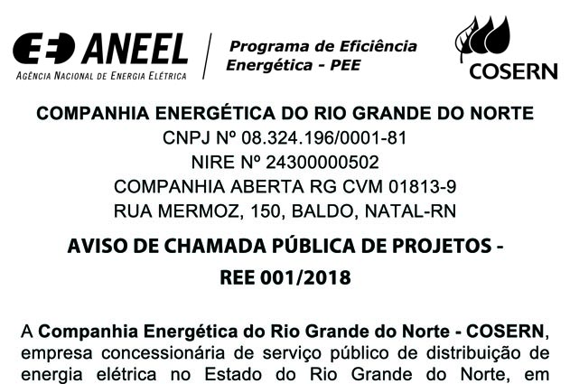 29.05.2018 Chamada pública da Cosern para seleção de projeto de eficiência energética