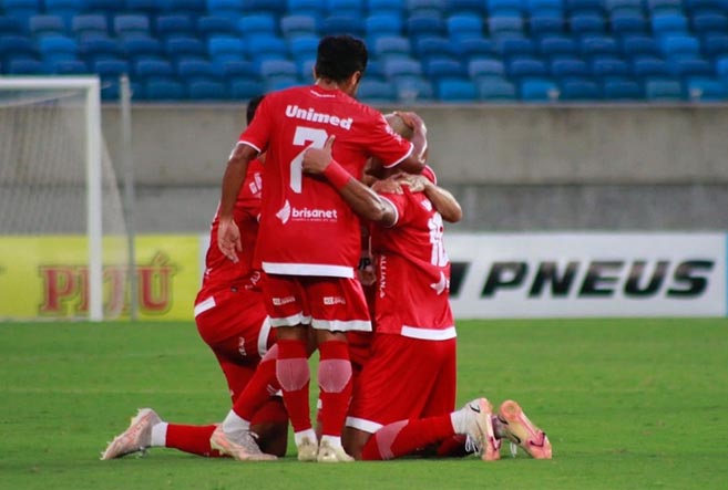 Crédito da foto: Reprodução/Canindé Pereira/Tribuna do Norte Jogadores do América comemoram vitória