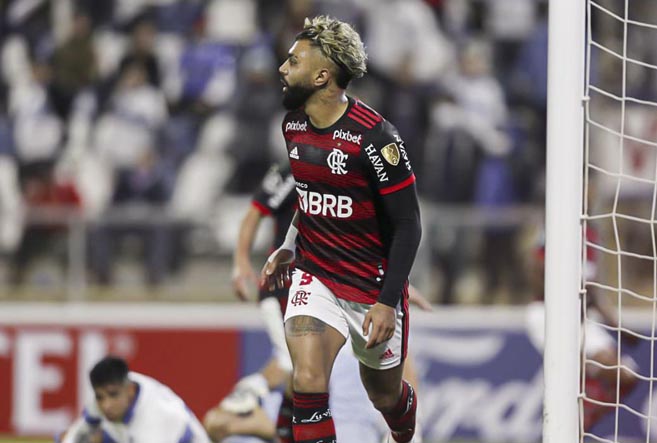 Gabigol comemora o primeiro gol do Flamengo diante da Universidad Católica