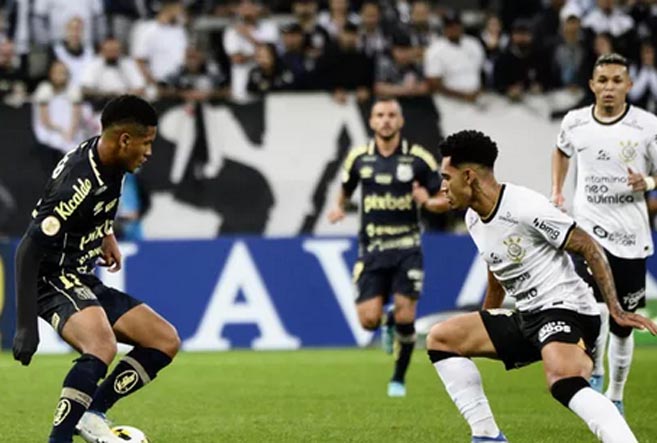 Corinthians e Santos empataram por 0 a 0 na noite deste sábado, na Neo Química Arena, pela 14ª rodada do Brasileirão. O resultado e a história do clássico foram bem diferentes do duelo de três dias atrás, pelas oitavas de final da Copa do Brasil, quando o Timão goleou um apático Peixe por 4 a 0. Dessa vez, o Corinthians, com um time alternativo, e o Santos, com equipe bem modificada, fizeram uma disputa equilibrada. Os dois rivais tiveram raras, porém boas chances de abrir o placar. Mas pararam em defesas de Cássio e John. A igualdade refletiu bem o que foi o jogo, com os donos da casa já de olho no Boca, pela Libertadores, e os visitantes mais ligados depois do vexame no meio de semana.