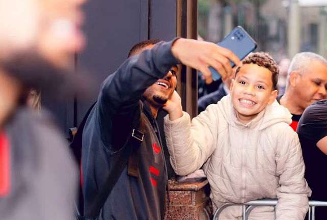 Samuel Lino tira foto com torcedor em viagem do Flamengo