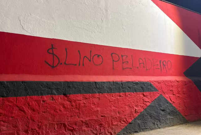 Muro da sede do Flamengo é pichado com crítica a Samuel Lino