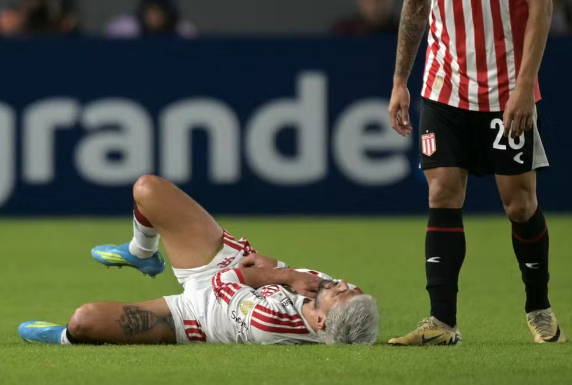 Crédito da foto: Reprodução Arrascaeta sofreu lesão no jogo contra o Estudiantes