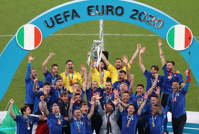 Após 53 anos do seu primeiro - e até hoje único - título da Eurocopa, a Itália voltou a sentir o gostinho de ser campeã continental de seleções. E foi com brio: jogando em território adversário, a Azzurra saiu atrás da Inglaterra logo no começo da partida, mas igualou no segundo tempo e venceu nos pênaltis (3 a 2), contando com duas defesas do goleiro Gianluigi Donnarumma.