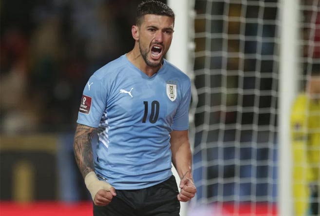Arrascaeta comemora o gol marcado pelo Uruguai contra a Bolívia