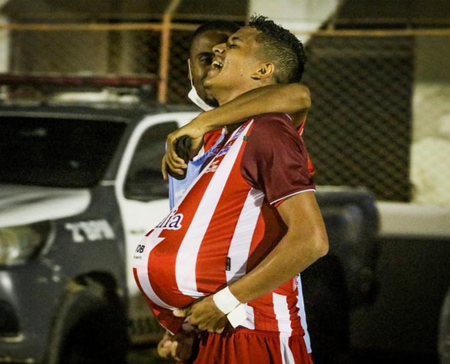 O Potiguar abriu o placar aos 26 minutos. Wilker recebeu pela esquerda e lançou Harrisson, o meia dominou, girou e finalizou com estilo, marcando um belo gol no Nogueirão.