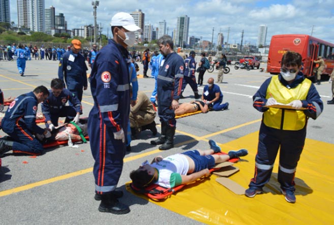 Uma colisão entre dois ônibus e um carro de passeio. Vinte vítimas. Uma possibilidade de incêndio. O socorro urgente e eficaz. Esse foi o cenário do evento que aconteceu na manhã deste sexta-feira (11), das 9h às 11h no entorno do Arena das Dunas envolvendo duzentas pessoas de diversas áreas: Polícia Rodoviária Federal, Polícia Federal, STTU, Polícia Militar, SAMU, Corpo de Bombeiros e Defesa Civil.