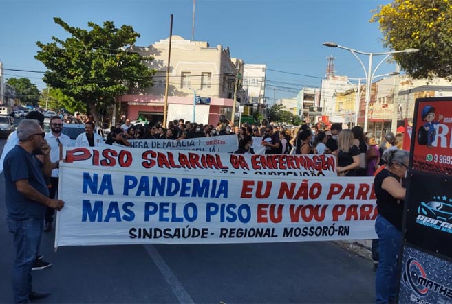 Crédito da foto: Arquivo / Jornal de Fato Profissionais da enfermagem realizaram protesto em Mossoró para cobrar o piso salarial