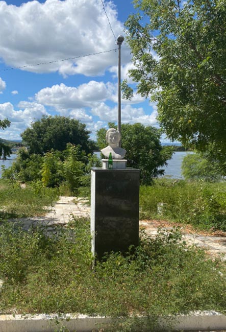 Busto de Lindalva Torquarto Fernandes em meio ao mato que toma conta do terminal