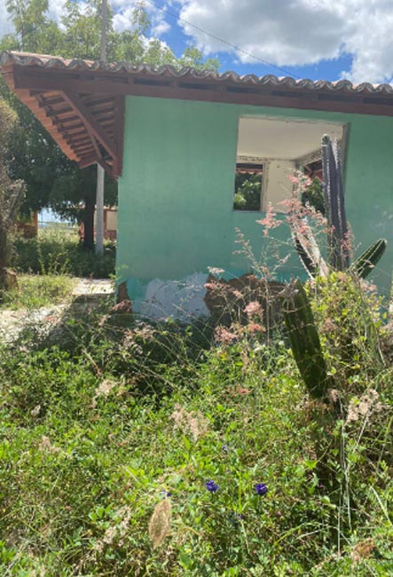 Quisques destruídos e tomados pelo mato e o abandono