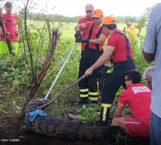 Um jacaré de quase três metros foi capturado no sítio Livramento, localizado na zona rural de Janduís, na região Oeste do Rio Grande do Norte. Uma equipe do Corpo de Bombeiros Militar do RN (CMBRN), da cidade de Patu, foi acionada para realizar o resgate do animal na manhã do último sábado (28).