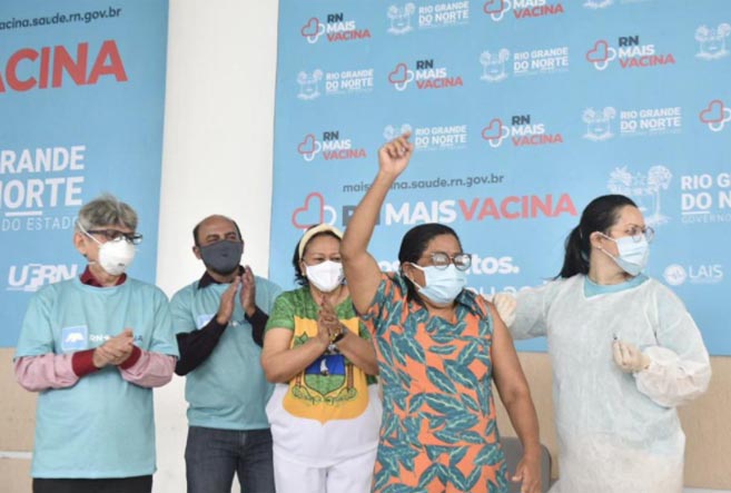 Era fim da manhã do dia 19 de janeiro de 2021, quando Maria das Graças Pereira de Oliveira recebeu em seu braço a primeira dose da tão aguardada proteção. A técnica de enfermagem de 57 anos, servidora do Hospital Giselda Trigueiro, foi a primeira moradora do Rio Grande do Norte a tomar uma vacina contra a covid-19, em uma solenidade organizada pelo Governo do Estado através da Secretaria de Estado da Saúde Pública (Sesap).