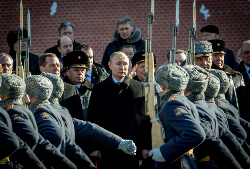 Putin acompanha cerimônia militar nas proximidades do Kremlin em 23 de fevereiro