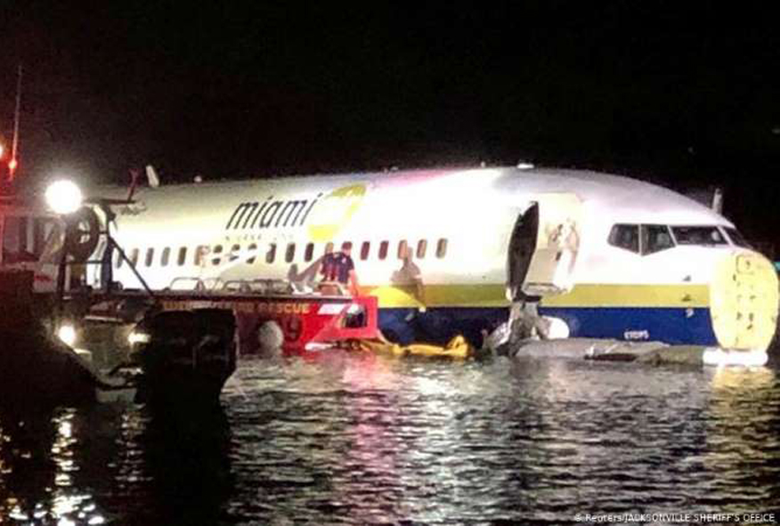 Um avião comercial com 143 pessoas a bordo – 136 passageiros e sete tripulantes – saiu da pista na noite de sexta-feira (3) e caiu no rio Saint Johns, perto do aeroporto naval de Jacksonville, na Flórida, Estados Unidos, no momento em que iria aterrissar.