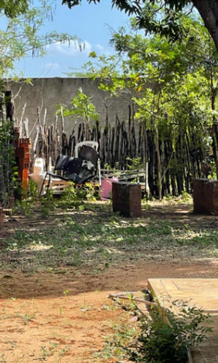 O cenário é de abandono. Casa velha, material encalhado, entulhos, mato tomando de conta e galinhas soltas no quintal. Não fosse o letreiro na parede, ninguém conseguiria identificar que ali funciona uma unidade de saúde pública.