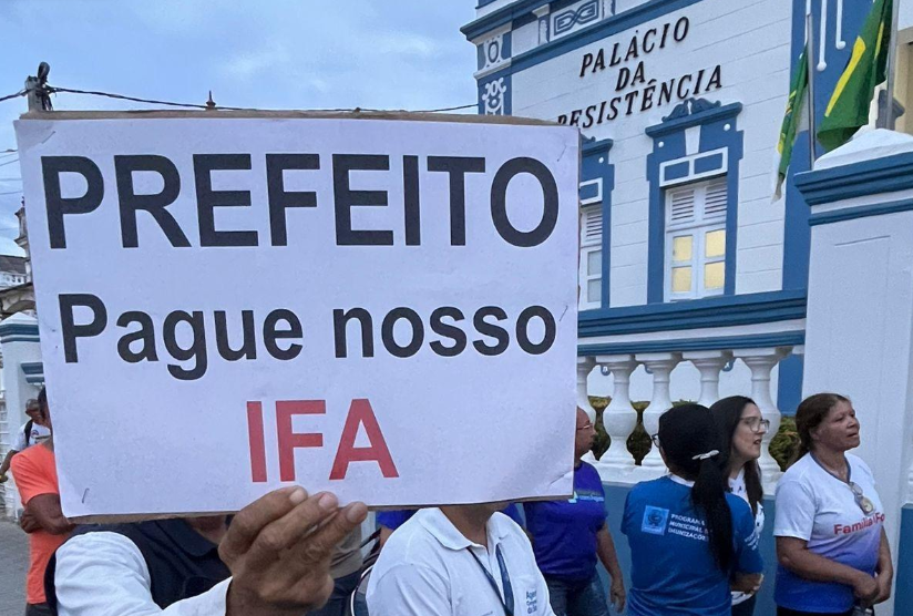 23.12.2025 Agentes comunitários fazem protesto e chamam prefeito Allyson de caloteiro