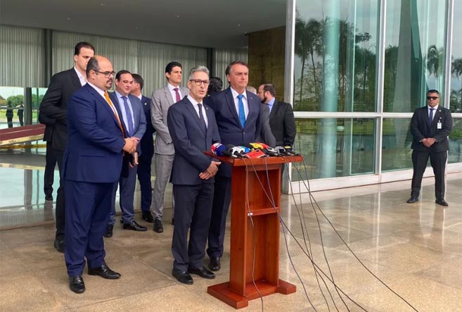 Romeu Zema faz pronunciamento no Palácio da Alvorada, em Brasília, ao lado do presidente Jair Bolson
