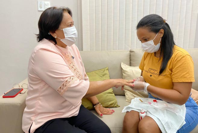 Governadora Fátima Bezerra faz as unhas na Reitoria da Uern antes de instalar governo em Mossoró