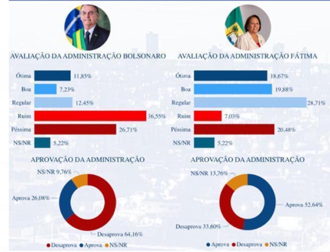 Gráfico mostra avaliação do presidente Bolsonaro e da governadora Fátima