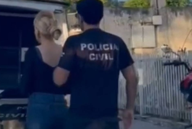 Crédito da foto: Reprodução Mulher conduzida à Delegacia da Polícia Civil em Mossoró