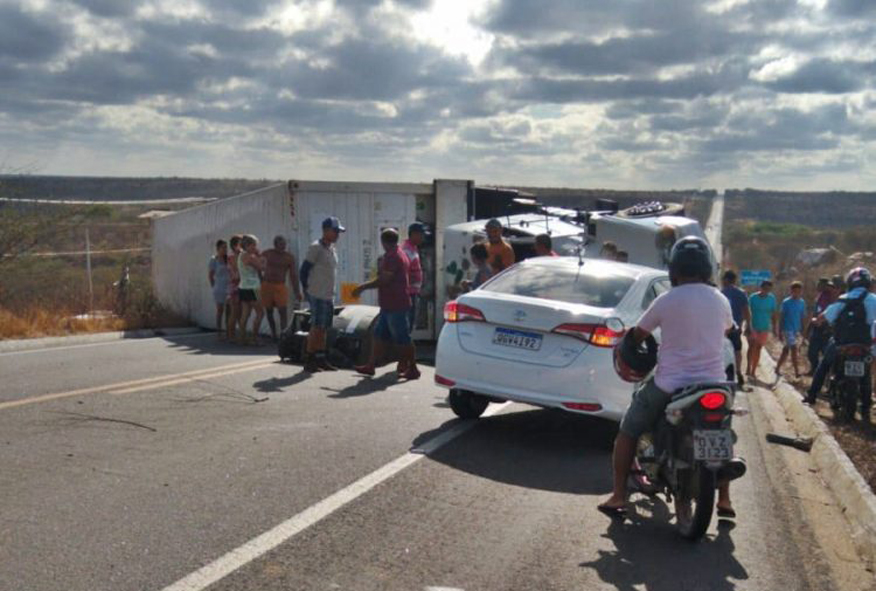 04.12.2019 Carreta carregada de manga tomba e interdita BR 304 em Itajá