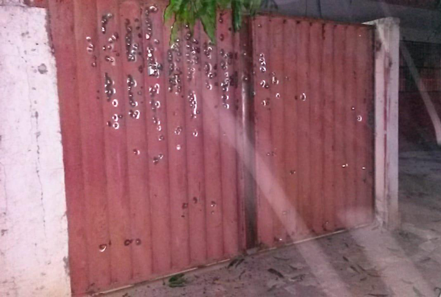 O portão da delegacia foi metralhado pelos bandidos na madrugada desta quarta-feira