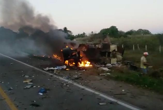 Crédito da foto: Redes sociais/Reprodução Carro-forte foi explodido na BR-226