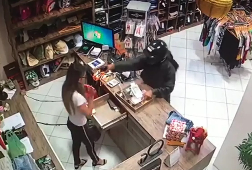 No vídeo, é possível ver a mulher esvaziando o caixa do estabelecimento, para entregar o dinheiro ao bandido. Mesmo sem ela esboçar qualquer reação, o criminoso levanta o braço a atira no rosto dela, fugindo em seguida sem levar nada.