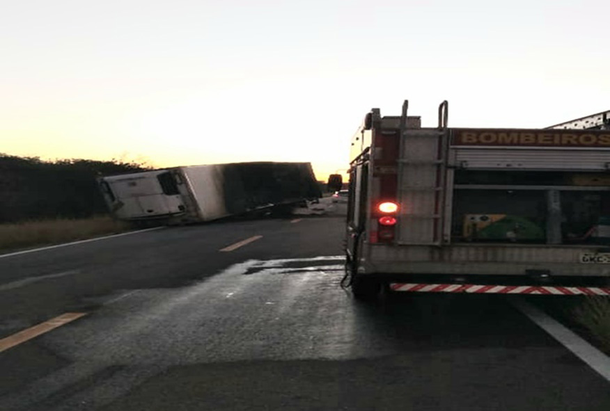 De acordo com informações colhidas no local, o incêndio foi causado pelo travamento de uma lona de freio da carroceria, que esquentou e pegou fogo. O motorista, natural da cidade de Betim-MG, ainda desengatou a cabine e conseguiu sair ileso.