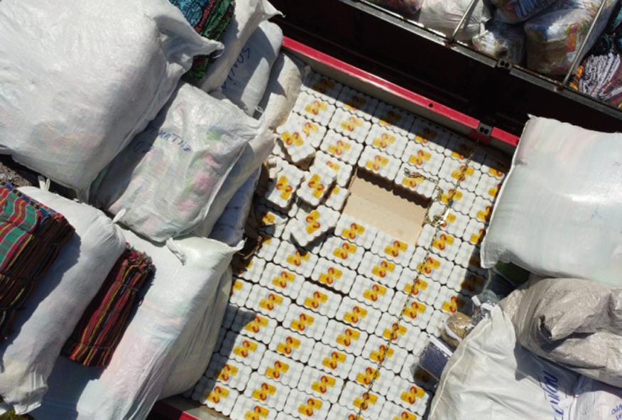 Ao ser efetuado o transbordo da carga excedente, a equipe constatou que havia por baixo das redes, 7.260 caixas de cervejas em latas de 275ml, as quais não possuíam documentação fiscal.