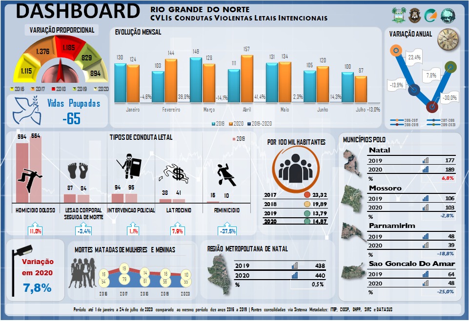 O levantamento do Obvio dá conta de 65 assassinatos à mais no estado em 2020 do que no mesmo período de 2019. O mapeamento mostra ainda que Natal lidera neste ano com 189 crimes, seguida de Mossoró, com 103.